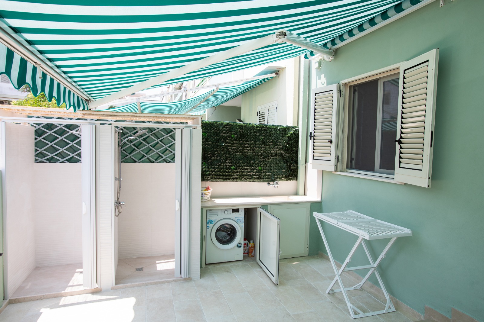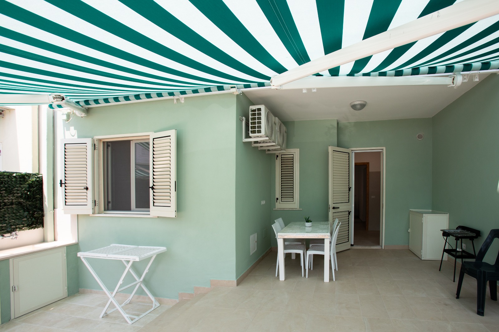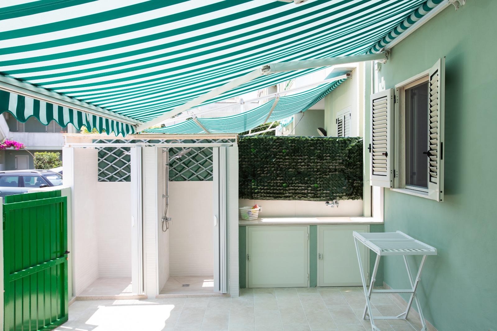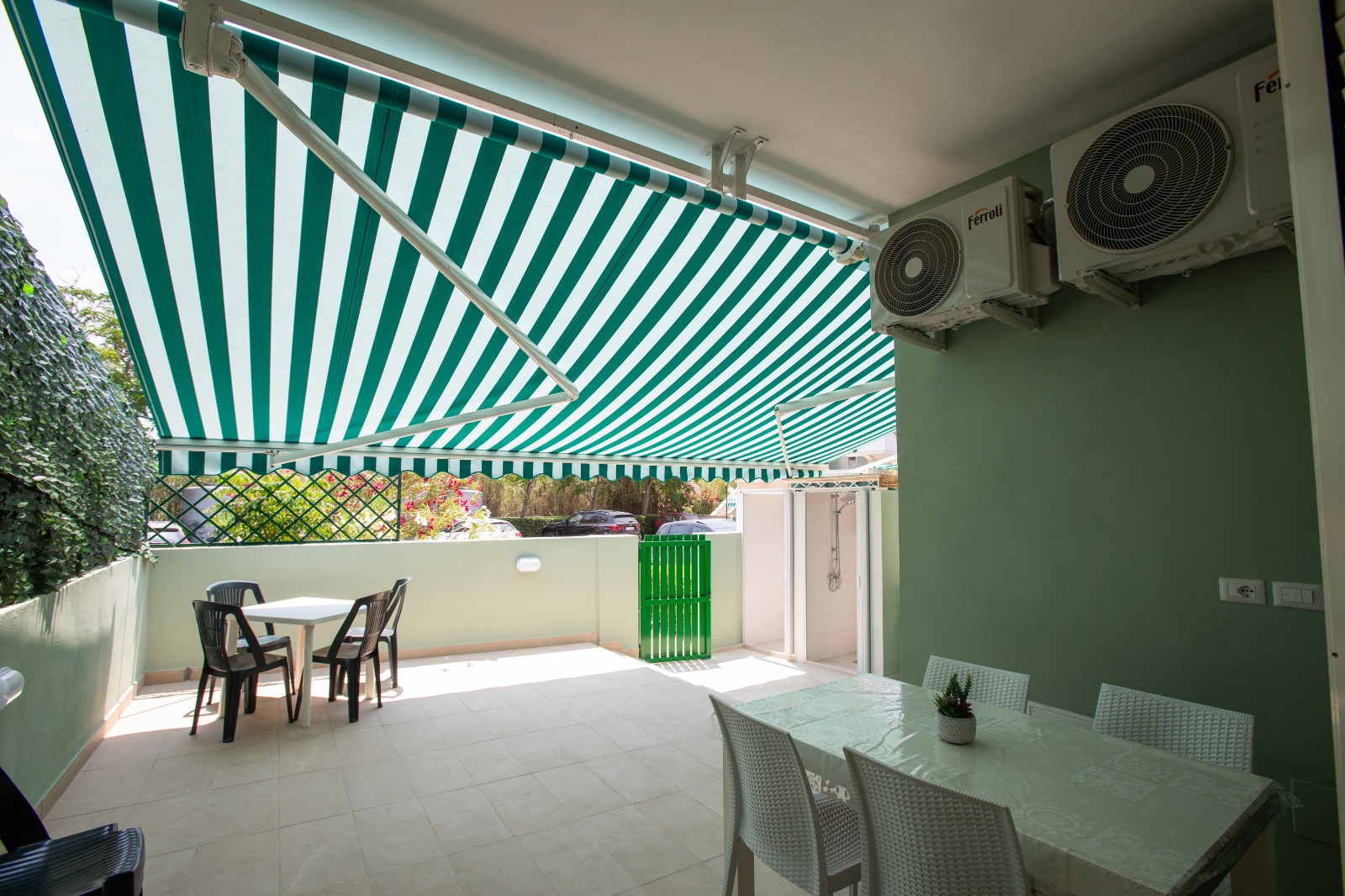 Villettina a schiera sita a Gallipoli via dei Tamerici 8, piano terra con postoauto privato. Composta da posto auto avanti, piccola verandina, soggiorno con divanoletto, camera matrimoniale, stanzetta con letto a castello, bagno con doccia, cucina e veranda esterna grande con due docce meravigliose da utilizzare prevalentemente appena si torna dal mare. Tutte le stanze sono climatizzate.